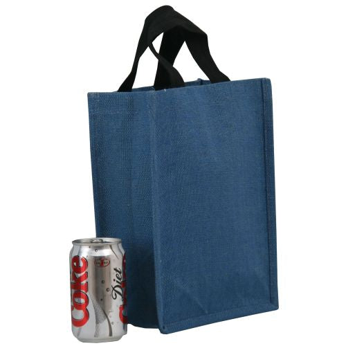 The Jute Lunch Bag, crafted from dyed laminated jute, offers a vibrant design with cotton web handles, ideal for carrying lunch or small items.