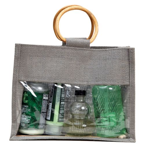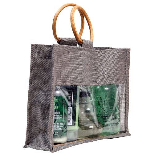 - Material: Dyed laminated jute (330 grams/metre ) with vinyl window